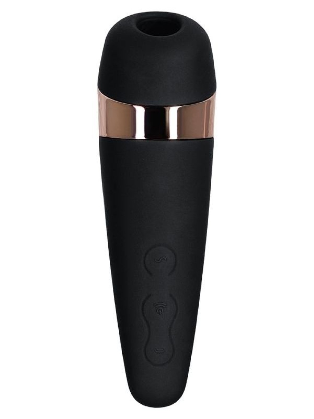 Bu yenilikçi yeni tasarım, klitorisin etrafında sızdırmazlık sağlamak amacıyla esnek silikonlu konik bir şekle sahiptir. Daha derin bir uyarı için titreşim de ekledik. Şefkatli ihtiyaçlardan yoğun ihtiyaçlara doğru yumuşarken dünyayı unutun.Bu zarif, siyah klitoris vibratörü, 11 basınç dalgası seviyesiyle sizi uyarır ve 10 nefes kesici titreşim ritmini birleştirir. Kadifemsi yumuşaklıkta silikon aparatı ile klitorisinizi nazikçe sararak sizi temas etmeden bulut 9'a götürür. Basınç dalgaları ve titreşim ritimleri ayrı ayrı kontrol edilebilir ve 110 heyecan verici olası kombinasyon sunulur, böylece bu mucize yaratanla asla sıkıcı bir an yaşanmaz. Satisfyer Pro 3+'ın güçlü performansı, sizi daha önce hiç yaşamadığınız bir orgazm yaşatan, seğirmeli bir coşkuya gönderecektir. Bu klitoris vibratörünün zarif tasarımı ve pembe altın rengi vurguları, onu en iyi arkadaşınız için de mükemmel bir hediye haline getiriyor.Satisfyer Pro 3+ hakkında bilmem gereken başka ne var?Satisfyer Pro 3+ size yalnızca basınç dalgaları ve titreşim kombinasyonunda özgür seçim sunmakla kalmaz, aynı zamanda su geçirmez (IPX7) kaplama sayesinde istediğiniz yerde keyfini çıkarabilirsiniz. İster küvette, ister duşta, ister konforlu çarşaflarınızın arasında olsun, bu keyif cihazı sizi her zaman mutluluğa fırlatmaya hazır. Kullandıktan sonra küçük mücevherinizi biraz sabun ve ılık su veya cinsel sağlık cihazı temizleyicisiyle kolayca temizleyebilirsiniz. Entegre lityum iyon piller, birlikte verilen USB şarj kablosuyla çevre dostu bir şekilde şarj edilebilir. Daha da fazla eğlence için biraz Satisfyer su bazlı kayganlaştırıcı kullanın; ıslak ve keyifli deneyimden kesinlikle keyif alacaksınız.2 ayrı kontrol edilebilir motorFısıltı moduIPX7 derecesine göre su geçirmezVücut dostu silikonTemizlemesi kolayLityum iyon bataryaUSB manyetik şarj kablosu dahil