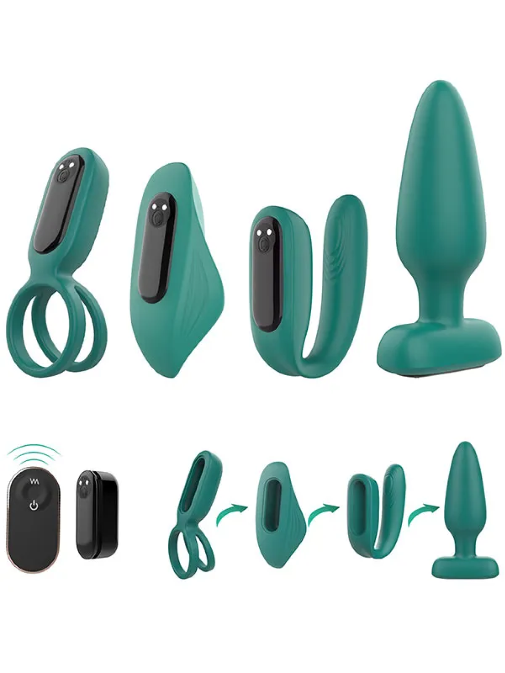 S-Hande The Love Kit. Set 4 farklı çeşitten oluşur. Titreşim motorunu istediğiniz oyuncağa kolaylıkla takabilirsiniz. 9 farklı titreşim modu vardır. USB 3.0 şarj kablosuyla şarj edilir. Uzaktan kumandası CR2032 pil kullanır. Kumandanın içinde pil varıdr.Anal plug; 12 cm x 3 cm Penis halkası; 9.8 cm * 2.3 cm * 4.1 cm Çiftler için vibratör; 7 cm * 54 cm * 7.9 cmGiyilebilir külot içi vibratör; 9 cm * 4.9 cm Uzaktan kumanda; 3.5 cm * 7 cm