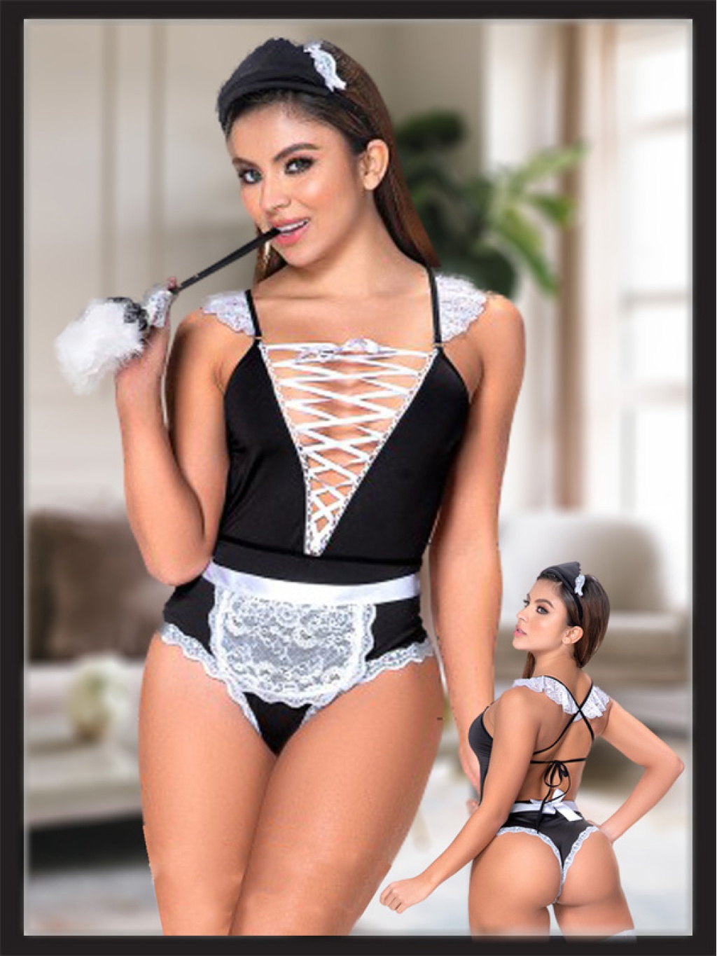 Siyah Dantel Detaylı Seksi Fantezi Hizmetçi Kostümü; Ürünümüz %100 PoliamidKumaştan Üretilmiştir. ;Paket içeriği Gecelik ve String olarak iki parçadan oluşmaktadır. Manken ölçüleri: 1,76cm 90/62/93 ;Görseldeki ürün S/M Bedendir.