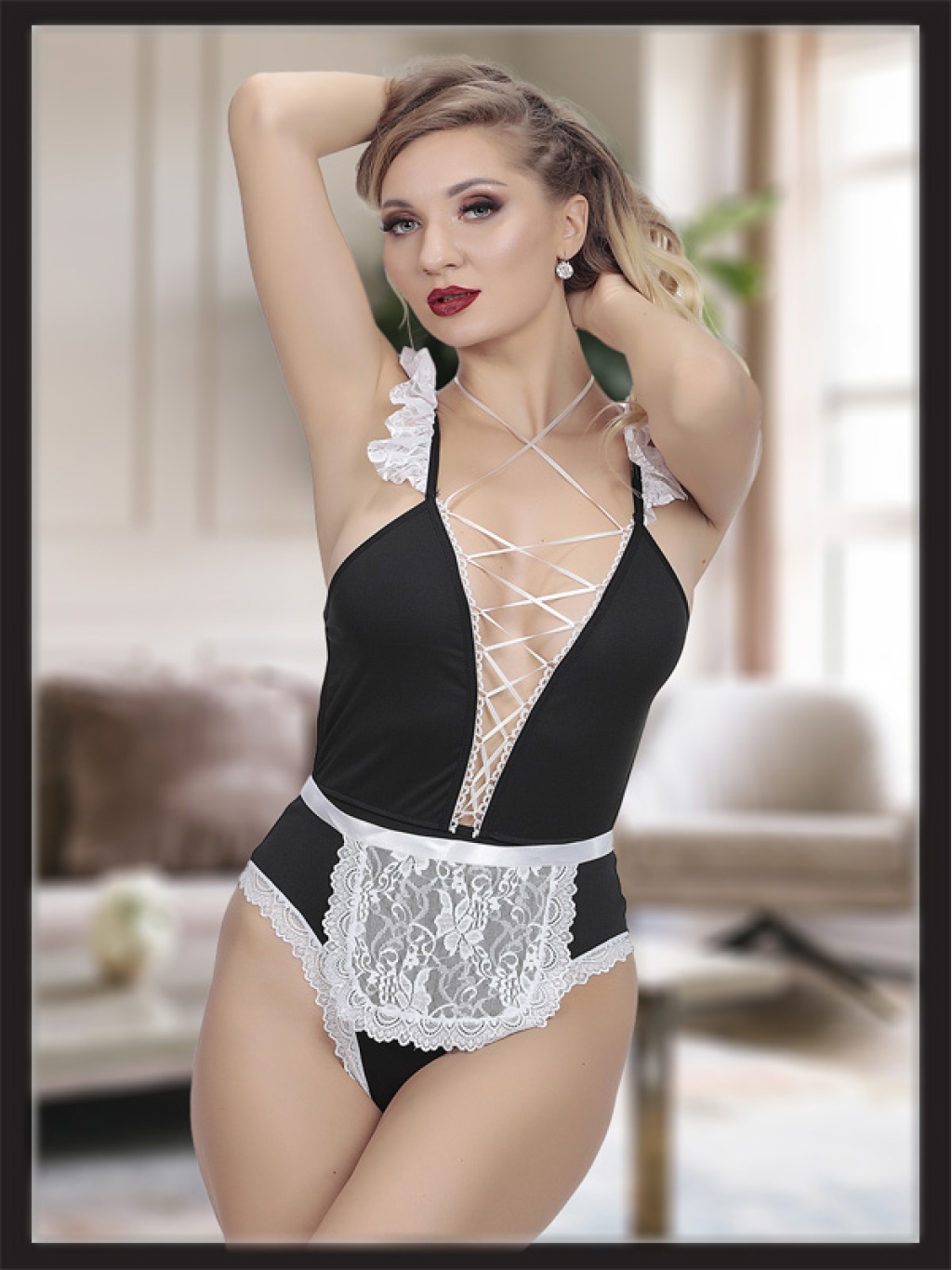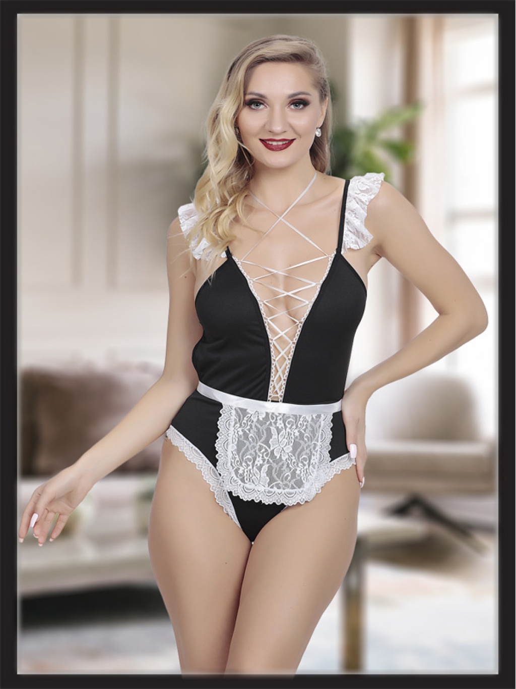 Siyah Dantel Detaylı Seksi Fantezi Hizmetçi Kostümü; Ürünümüz %100 PoliamidKumaştan Üretilmiştir. ;Paket içeriği Gecelik ve String olarak iki parçadan oluşmaktadır. Manken ölçüleri: 1,76cm 90/62/93 ;Görseldeki ürün S/M Bedendir.