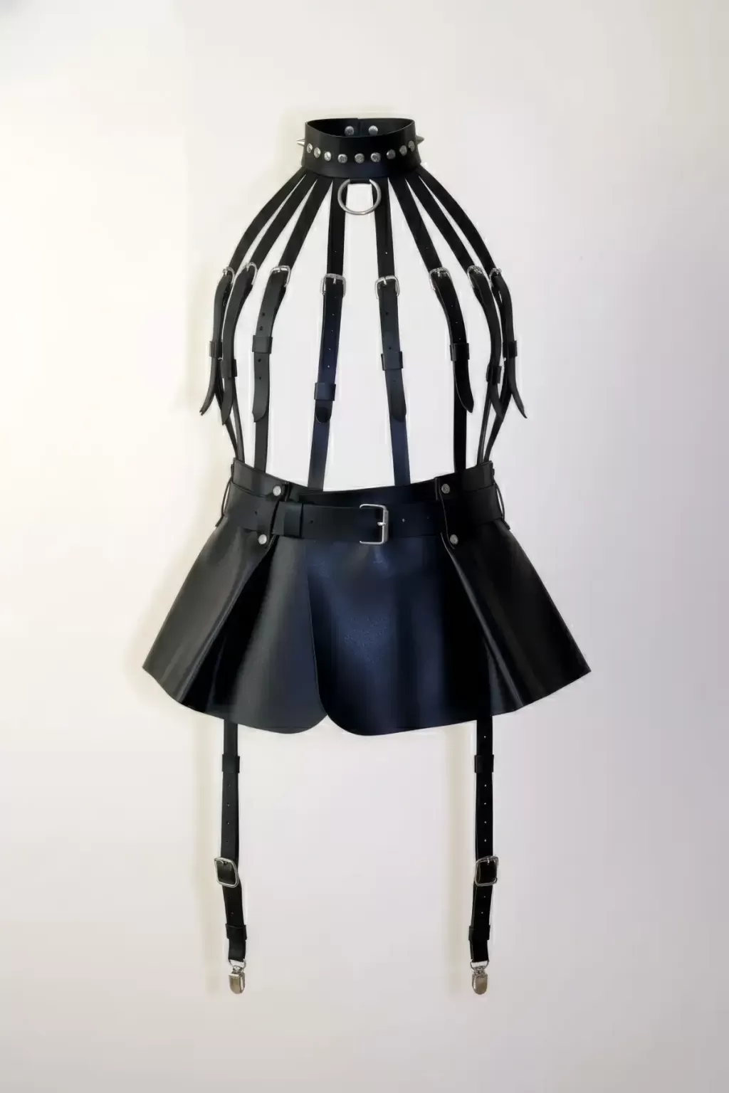 Siyah Etek Suni Deri Etek Tokalı Kafes Yapılı Mini Etek - APFT998