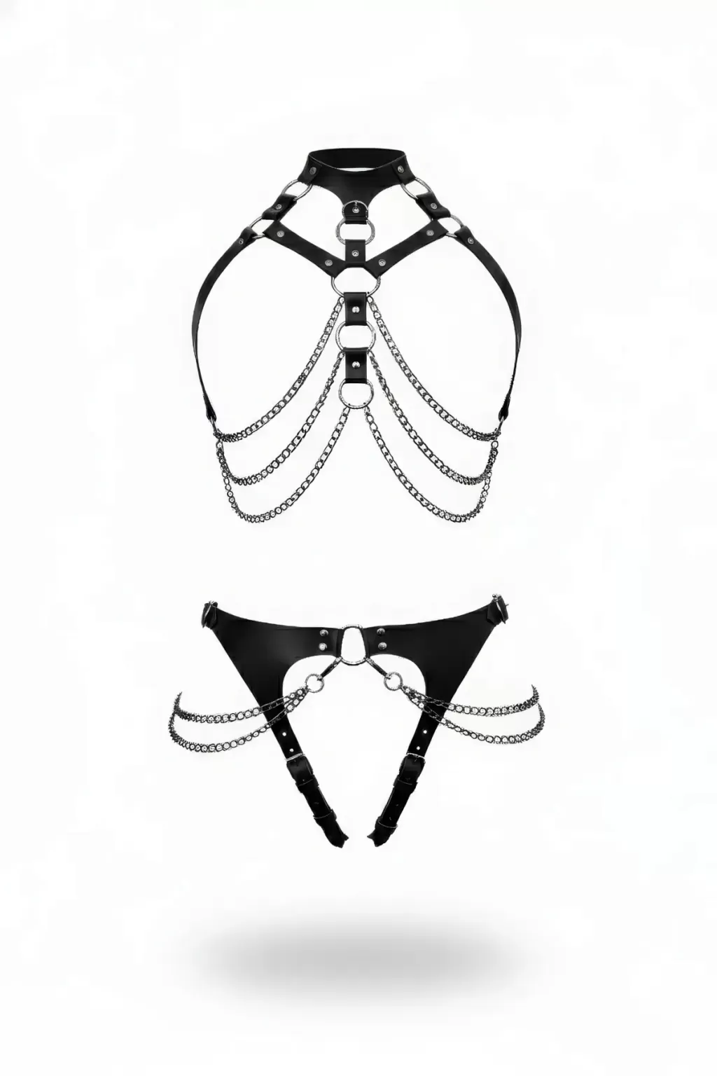 Siyah Harness Takım Zincir Detaylı Halkalı Vücut Aksesuarı - APFT1387