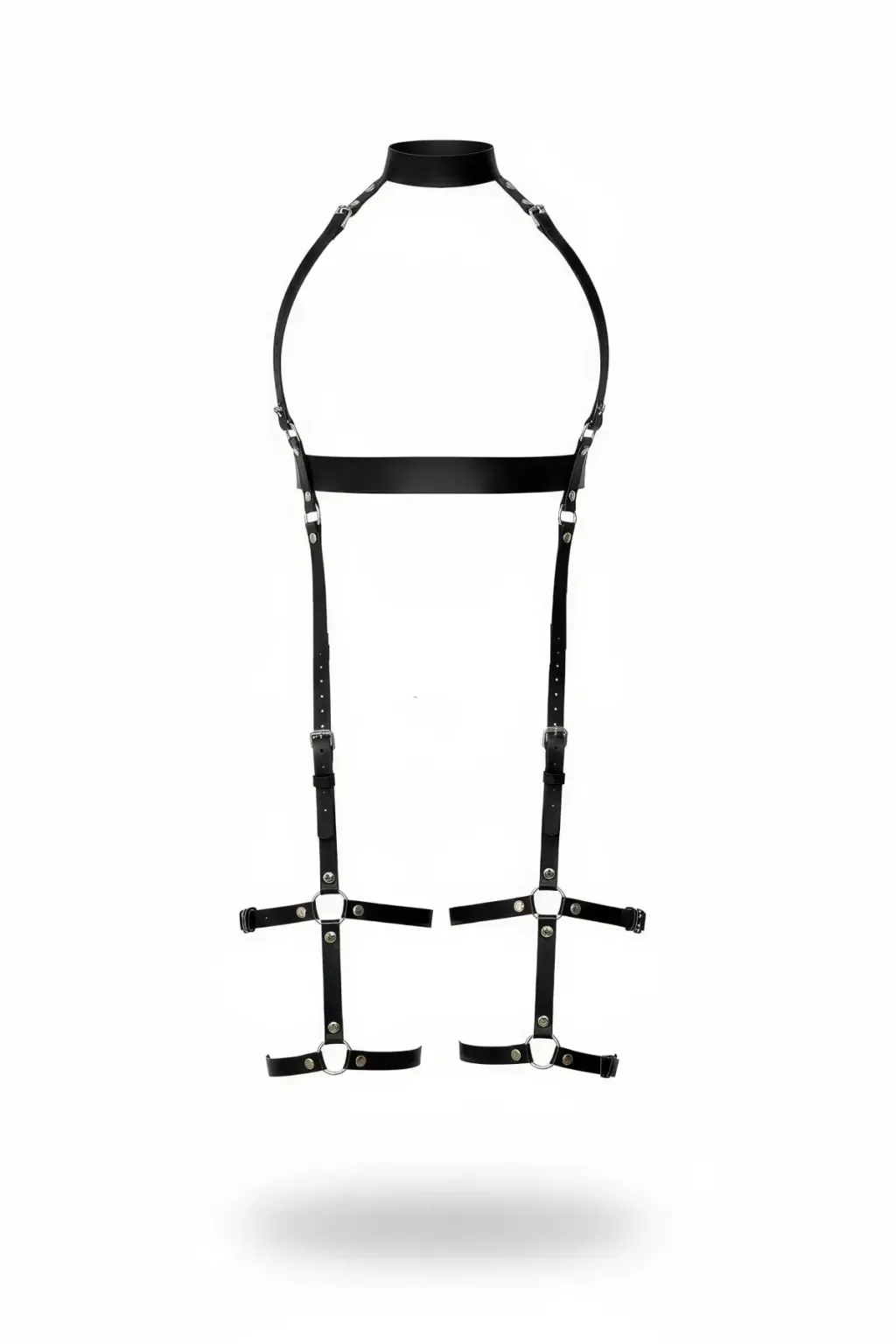 Büyük Beden Siyah Kadın Jartiyer Harness Boyun ve Bacak Detaylı Deri Aksesuar - APFT230