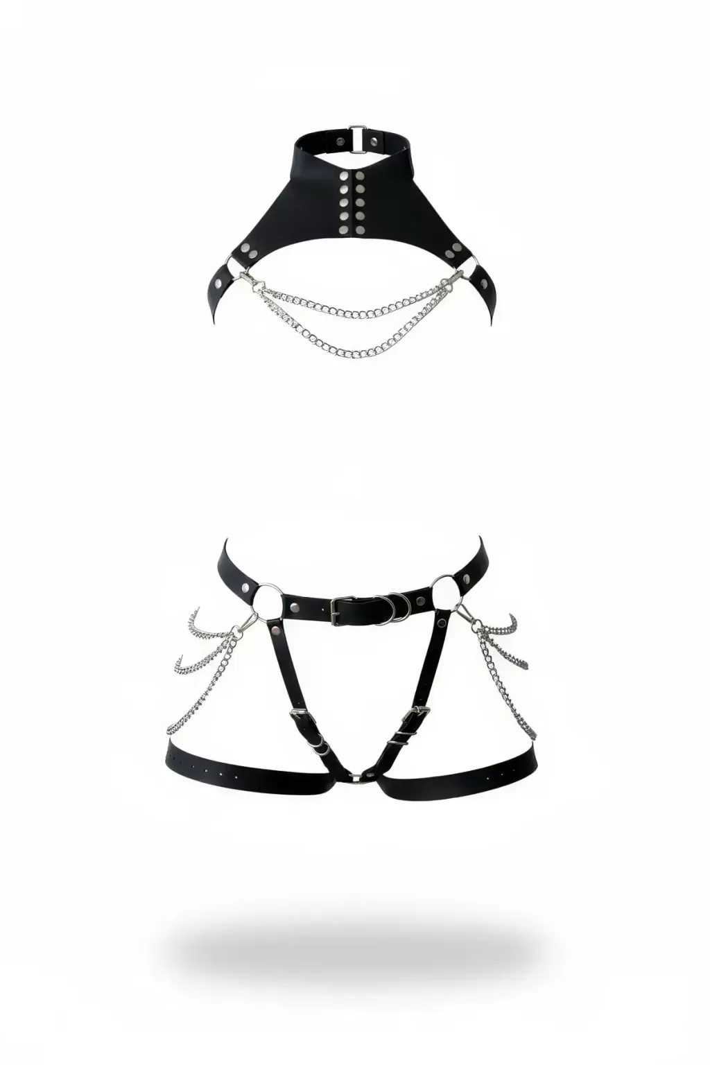 Büyük Beden Siyah Kadın Jartiyer Harness Boyun ve Bacak Detaylı Deri Aksesuar - APFT230