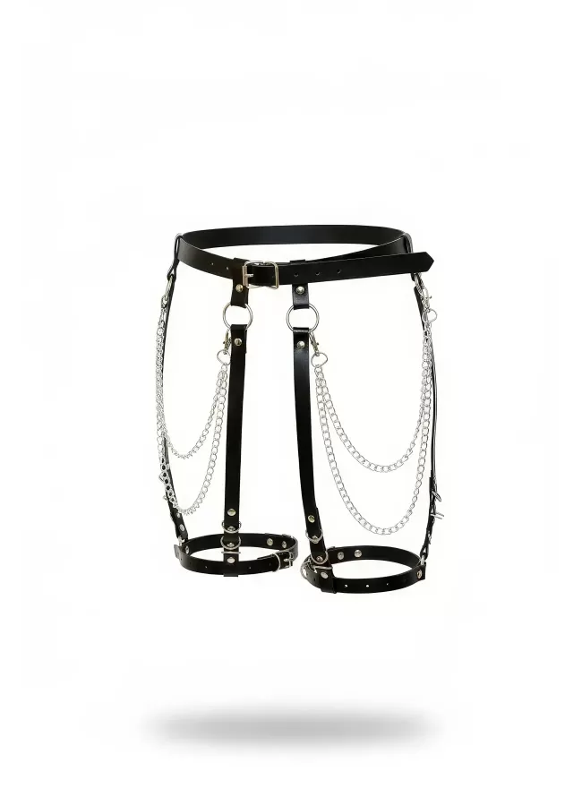 Siyah Jartiyer Harness Zincir Detaylı Suni Deri Vücut Aksesuarı - APFT958