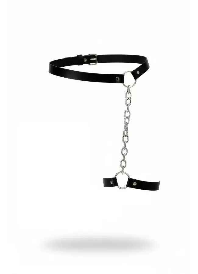 Siyah Jartiyer Harness Zincirli Metal Halkalı Deri Bacak Kemer - APFT961