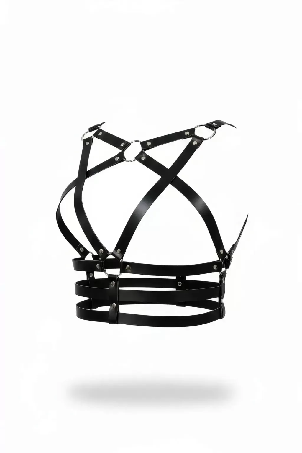 Siyah Kadın Kemer Deri Çapraz Halka Detaylı Vücut Aksesuarı - APFT955