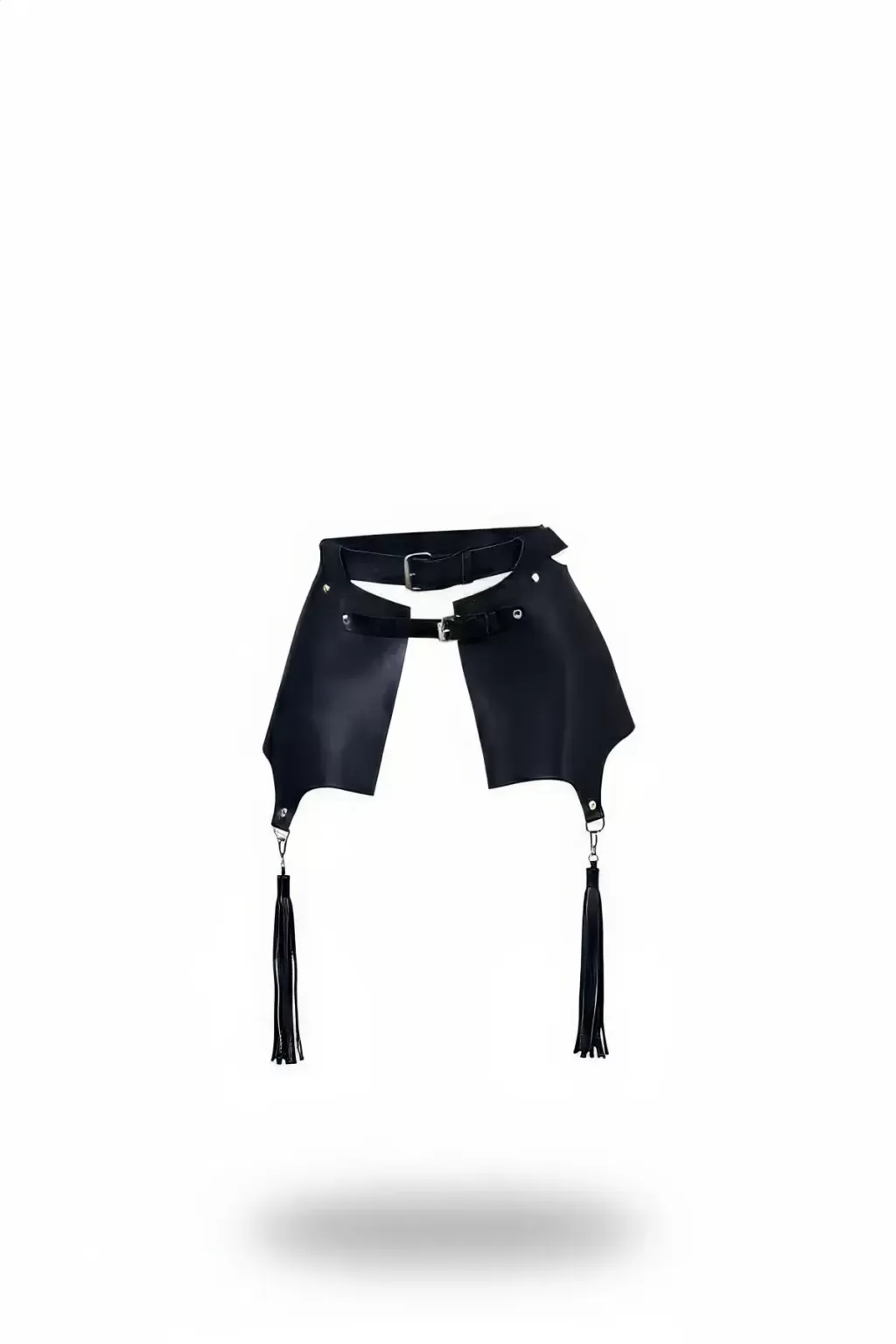 Siyah Kadın Kemer Püskül Detaylı Geniş Deri Bel Aksesuarı - APFT985