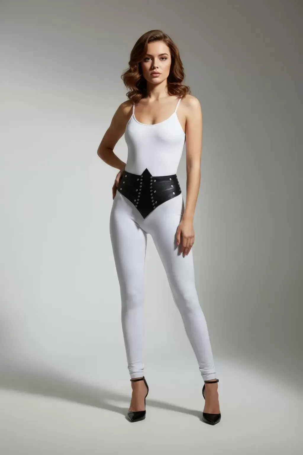Siyah Kadın Kemer Zımba Detaylı Kalın Yüksek Bel - APFT905