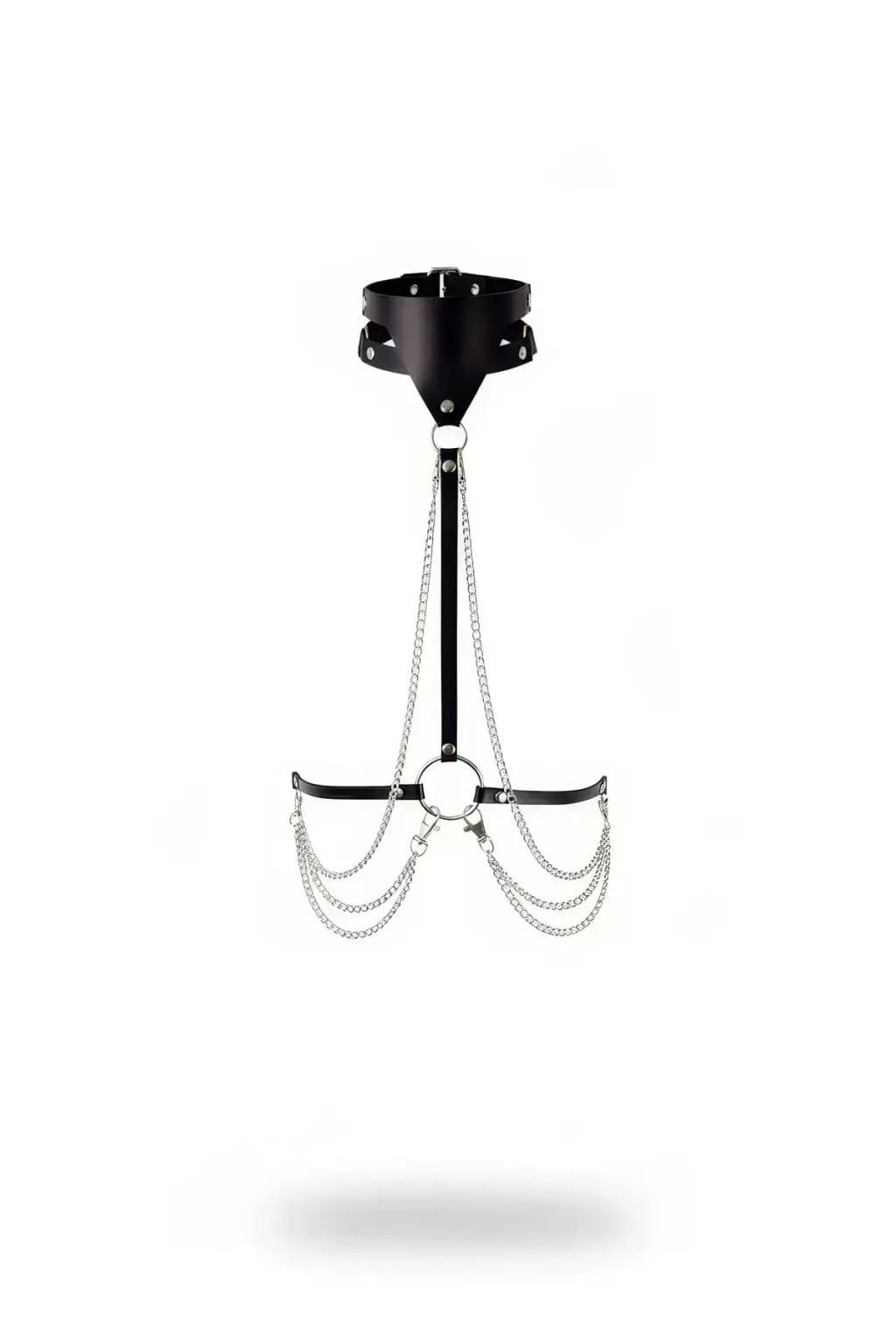 Siyah Kadın Kemer Zincir Detaylı Deri Vücut Kemeri - APFT7