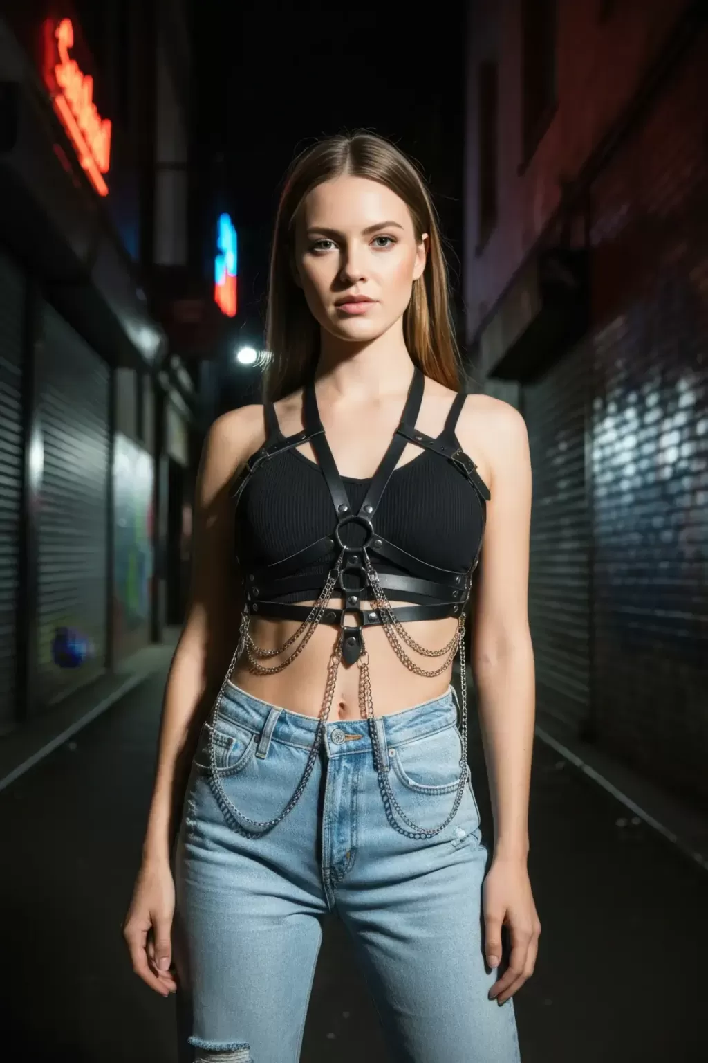 Kelepçeli Kalça Harness Deri Erotik Giyim