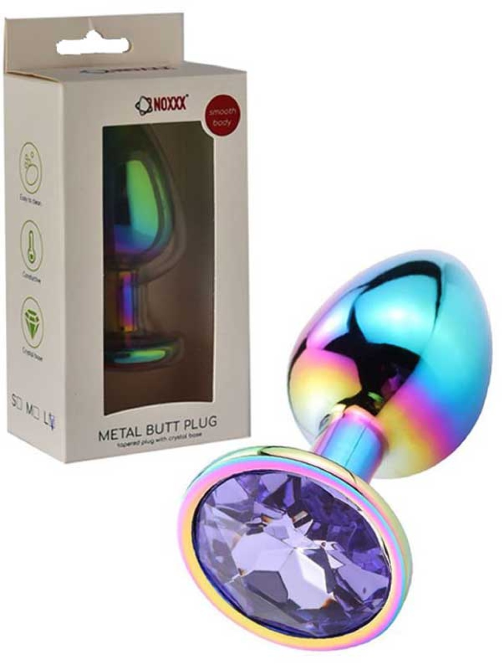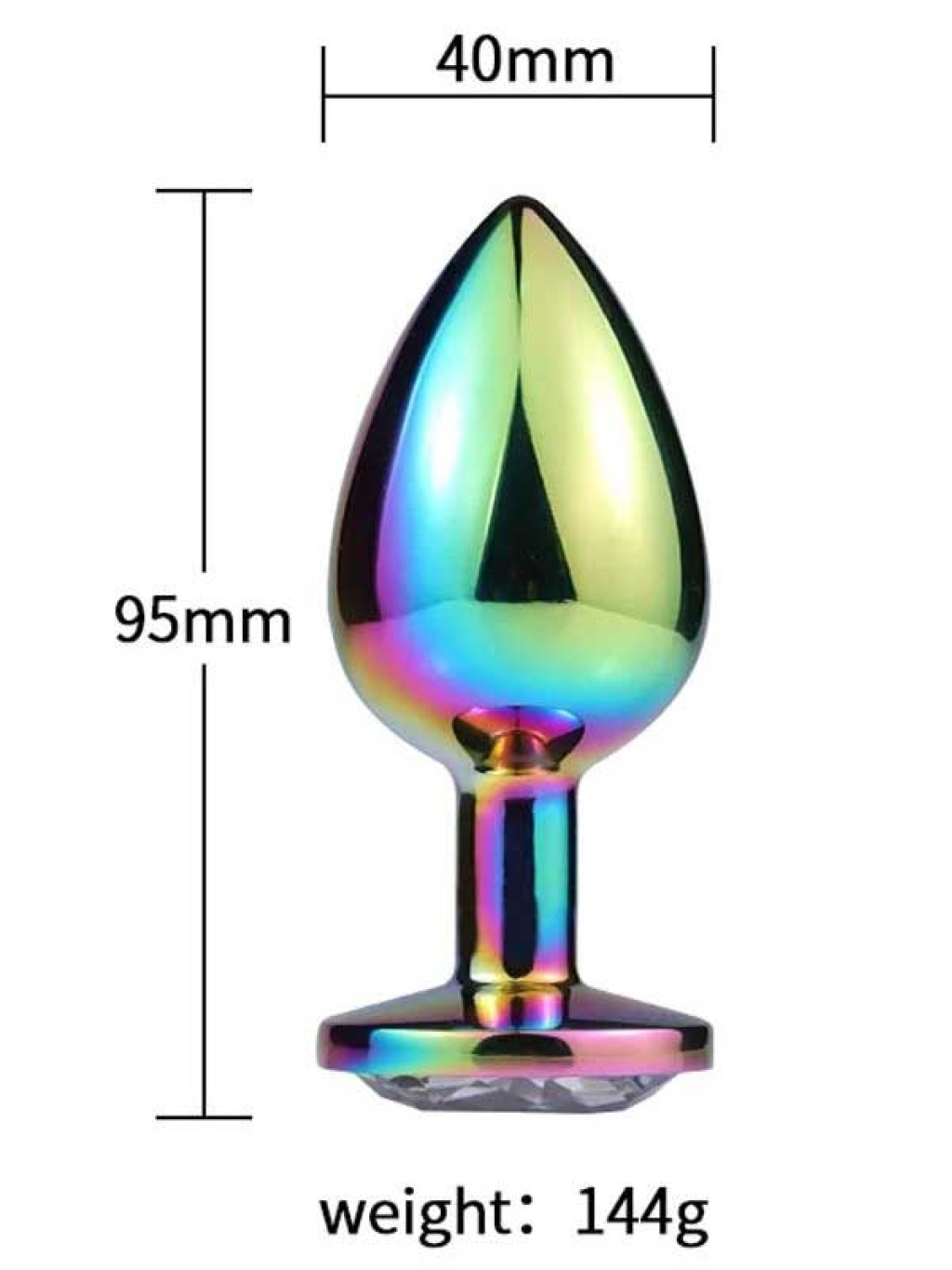 Metal arkası kırmızı mücevherli renkli taşlı 2.7 cm çapında anal plug.