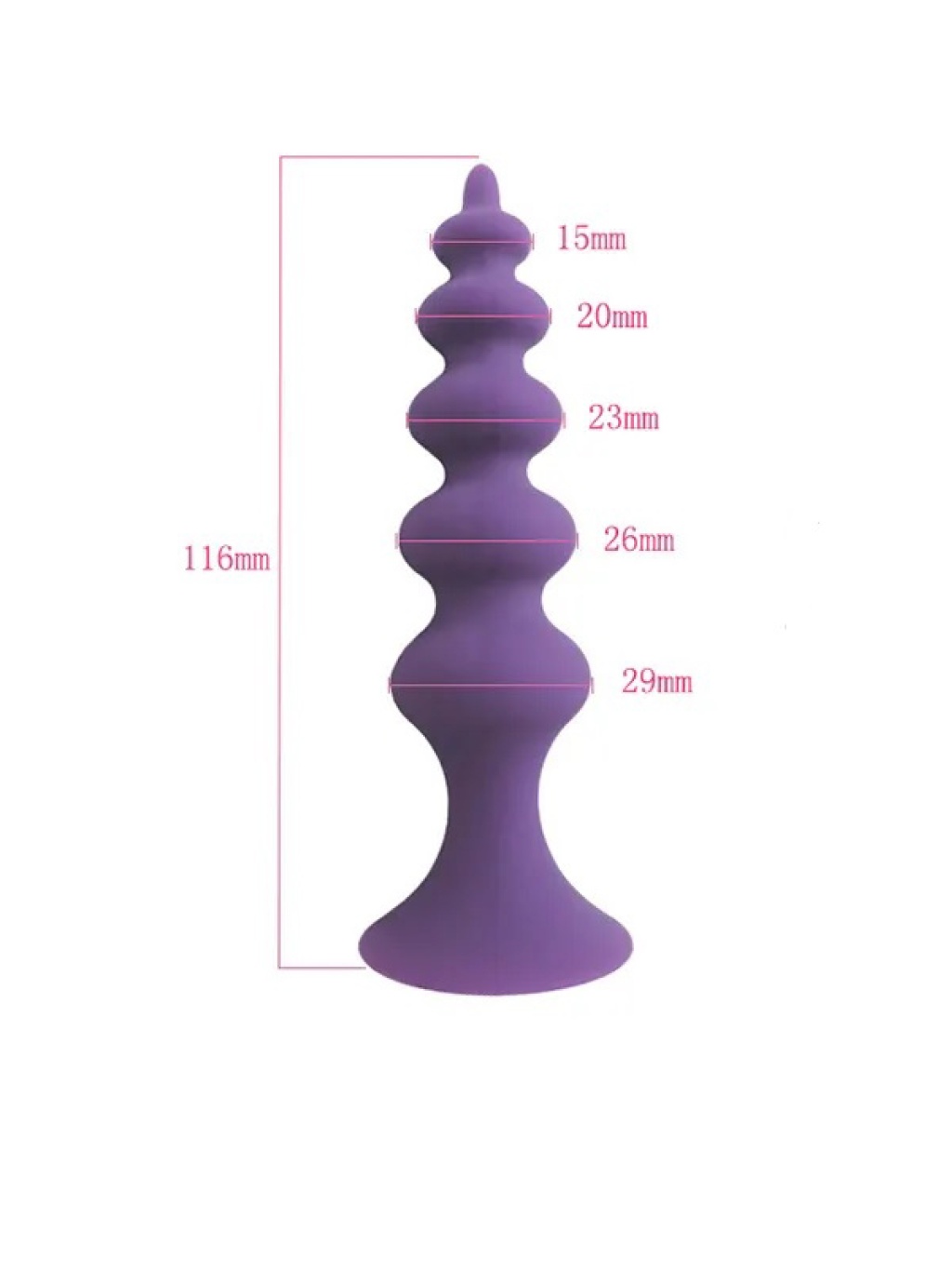 -Açıklama: Vantuzlu Boğumlu Silikon Anal Plug Mor -Ürün Rengi: Mor -Titreşim modu: Yok -Ağırlık: 45gr -Uzunluk: 11cm -Kullanılabilir uzunluk: 10cm -Pil: yok -Kutu İçeriği: Şeffaf poşet içerisinde