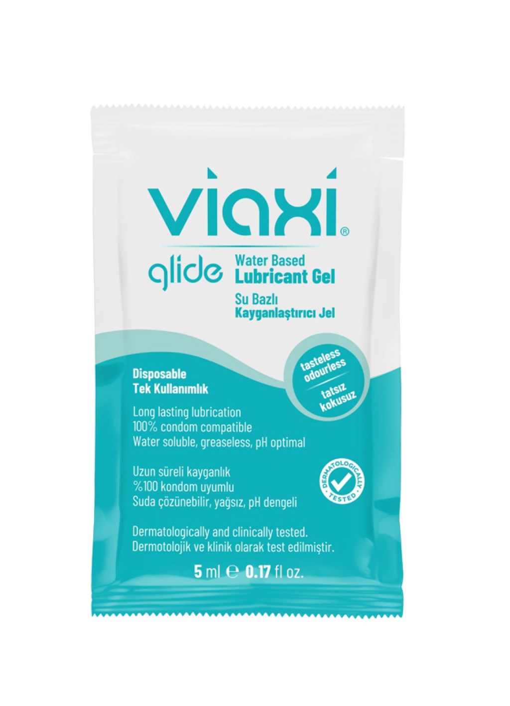 Viaxi Glide Kayganlaştırıcı Jel Şaset 5x5 mlViaxi Glide Kayganlaştırıcı Şaset Jel 5x5 ml, su bazlı, renksiz ve kokusuzdur. Uzun süre kurumayan kayganlaştırıcı özelliği ve rahatlatıcı etkisiyle vajinal kuruluğu azaltmaya yardımcı olur. Dermatolojik ve klinik testlerden geçmiştir.